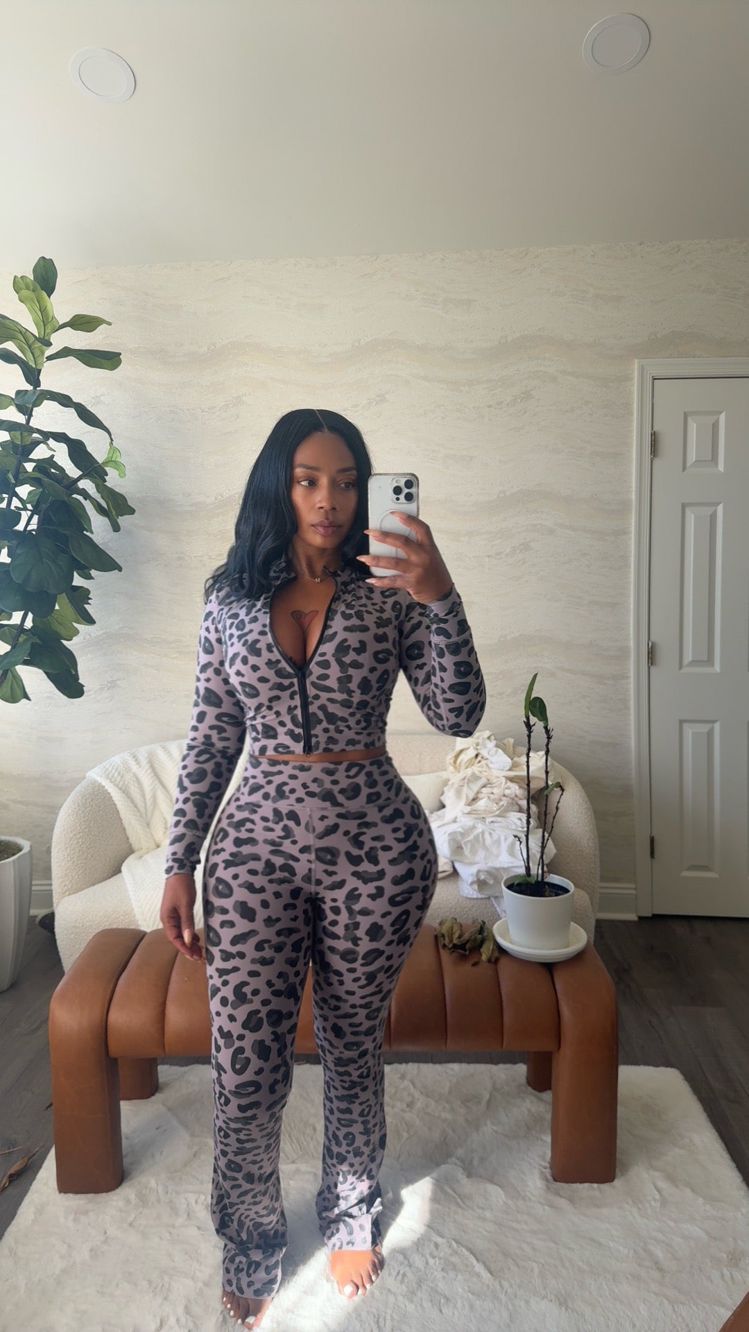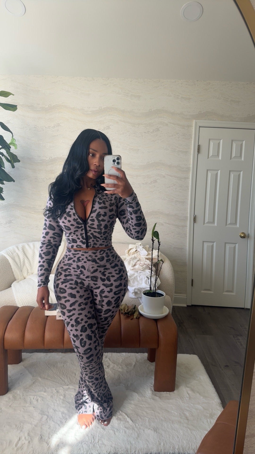 This versatile two-piece set, made of 75% Nylon and 25% Spandex, is perfect for confident women looking for a stylish and comfortable outfit. The vintage wash adds a touch of timeless elegance, while the flare leg design and sexy fit will make you stand out in any crowd. Perfect for dressing up or down, this set will surely become your go-to choice for any occasion. Tall friendly for added convenience.